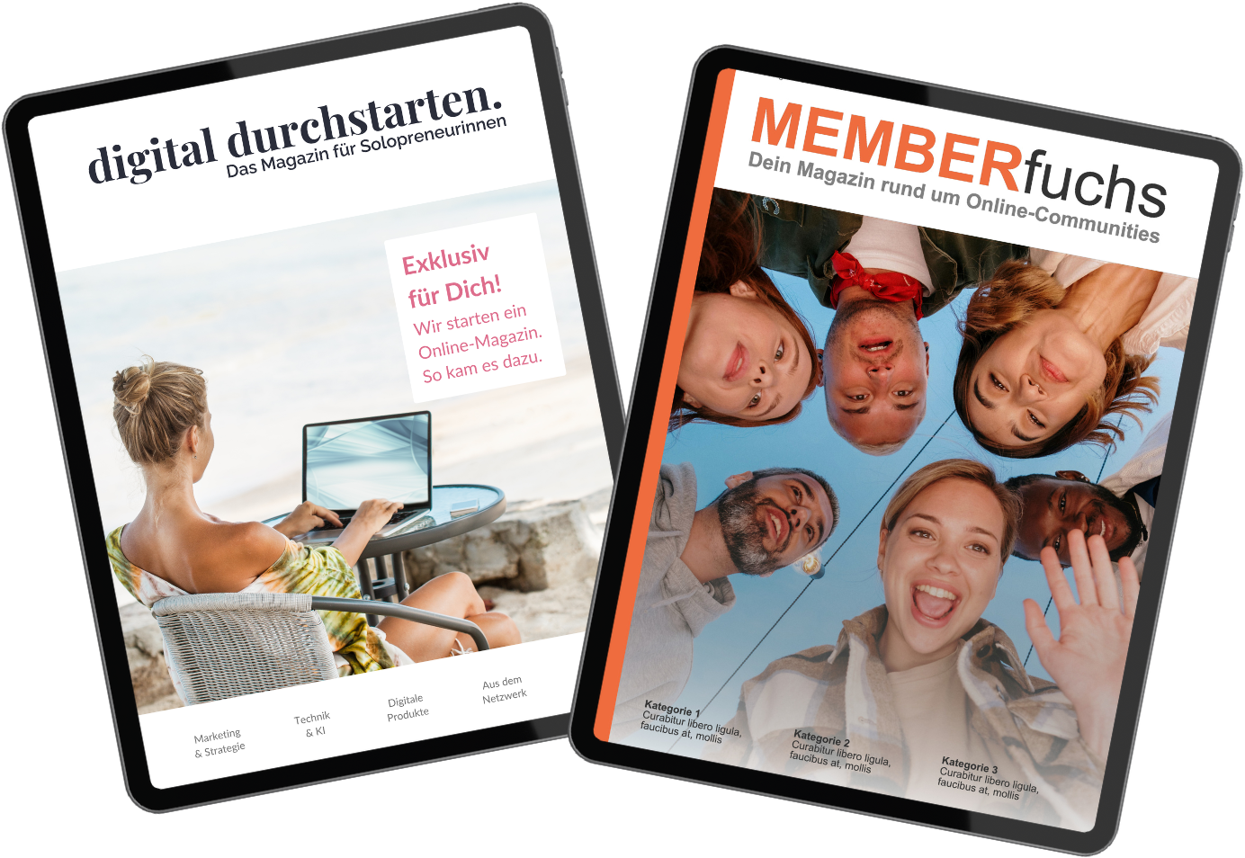 Dann abonniere eines (oder beide) meiner Online-Magazine und erfahre, wie du dir ein erfüllendes Online-Business aufbauen kannst.